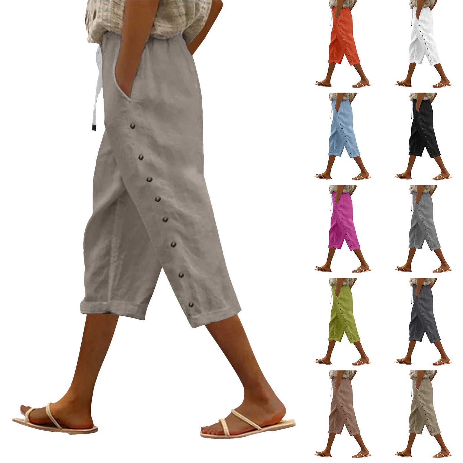 Casual Patchwork Button Cropped Pants For Women