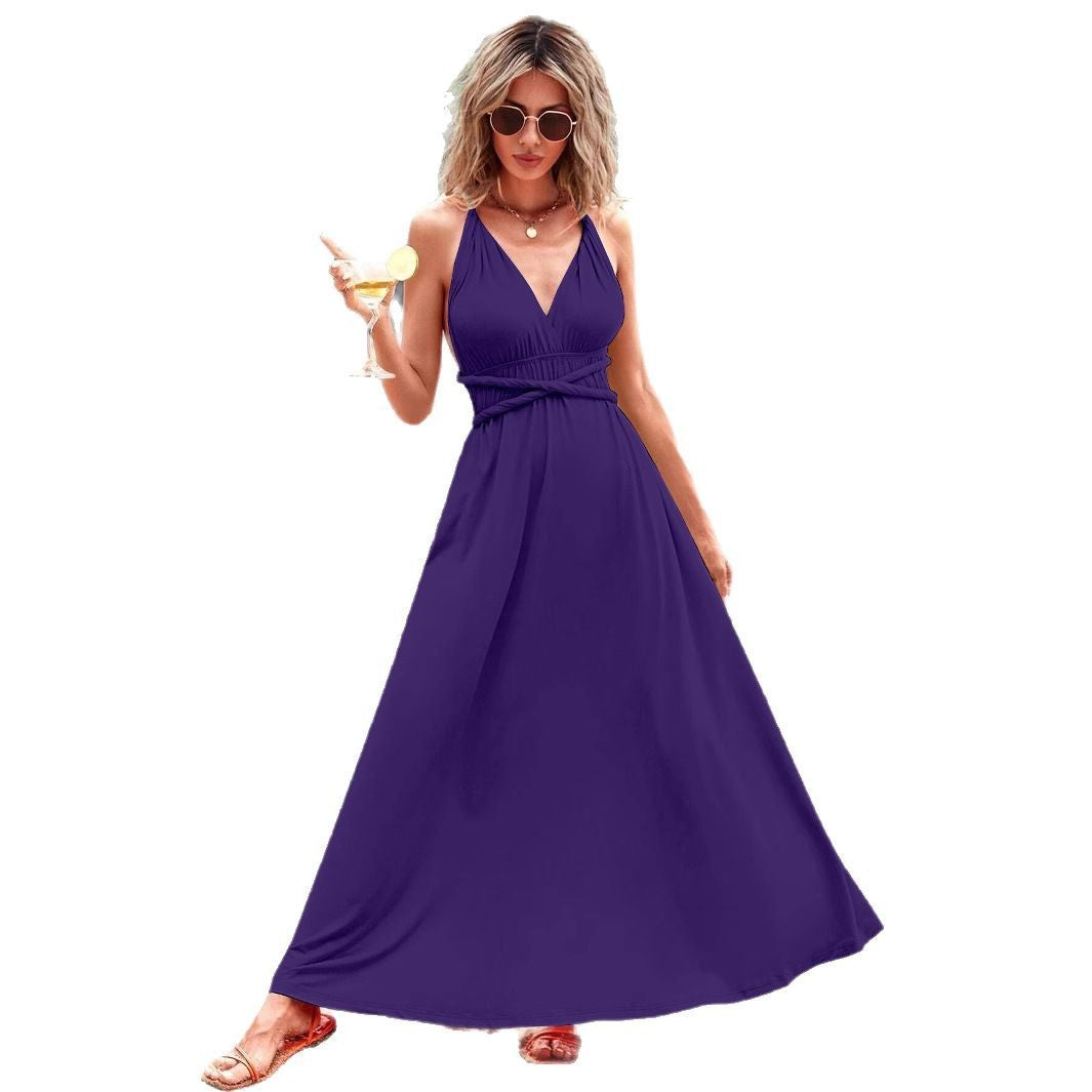 Multiple Wear Multi-rope Cross Strap Backless Sexy Dress